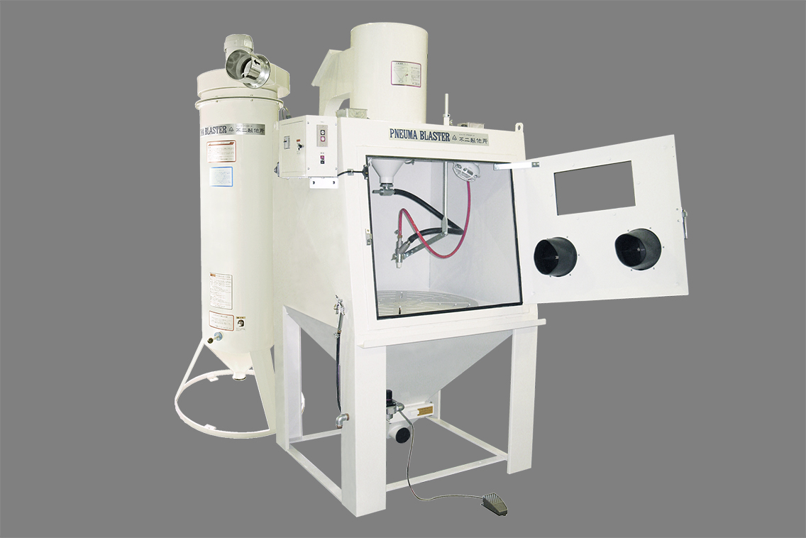 下記ラインアップより、製品形状や処理数量に応じたエアーブラスト装置(サンドブラスト機)をご選定ください。ブラスト装置の専用設計、製造も大歓迎です。