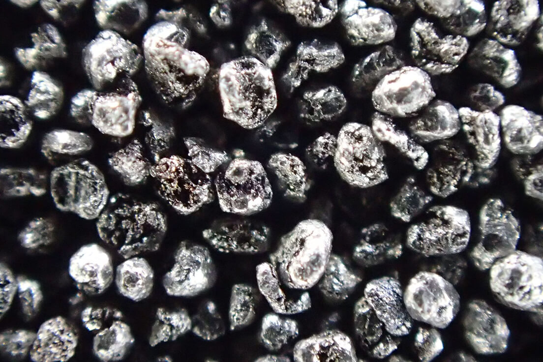 後工程で酸処理をすると溶けるという特性から主にアルマイトの下地処理として使用されます。 ガラスビーズでの加工面と比較し、光沢を抑えた落ち着いた仕上がりになります。